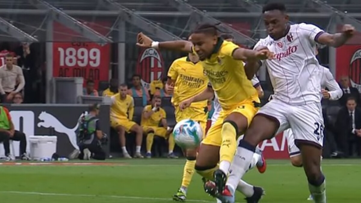 “Siamo all’86’, con il Milan avanti 1-0. L’arbitro Mercenaro non fischia il fallo di Lucumì su Nkunku, mentre assegna il rigore per l’intervento successivo di Freuler, sempre sul francese. Nel primo caso, Nkunku protegge palla con la gamba sinistra ed è davanti al difensore del Bologna: il contatto è inevitabile e c’è anche la spinta con il braccio destro di Lucumì. Due falli netti. Poco dopo arriva anche il contrasto tra Freuler e Nkunku.